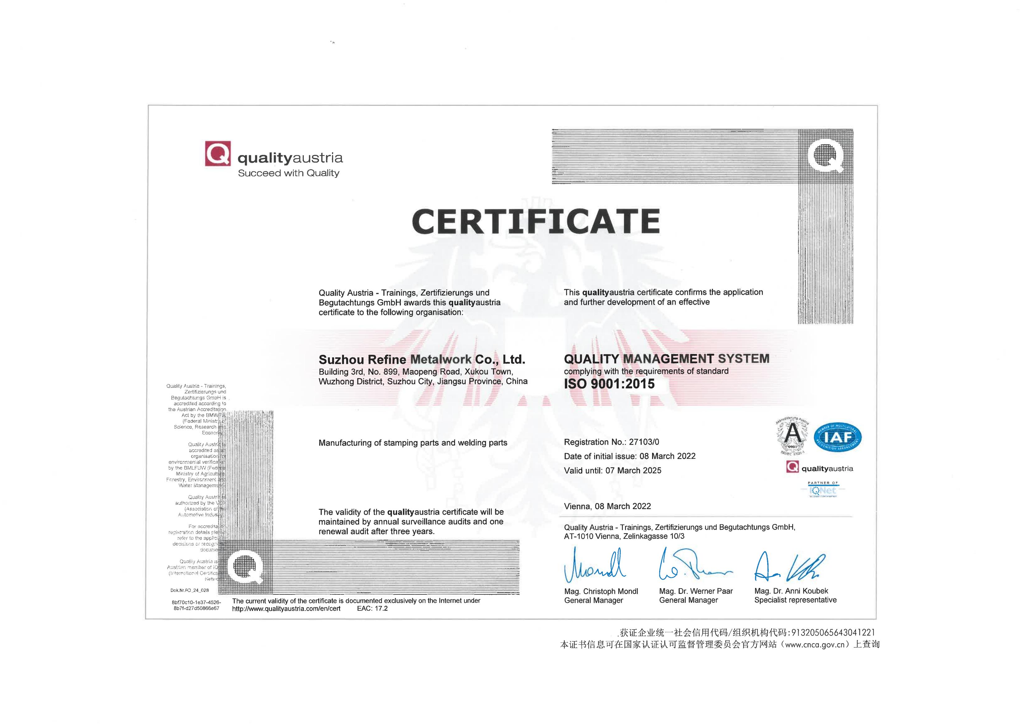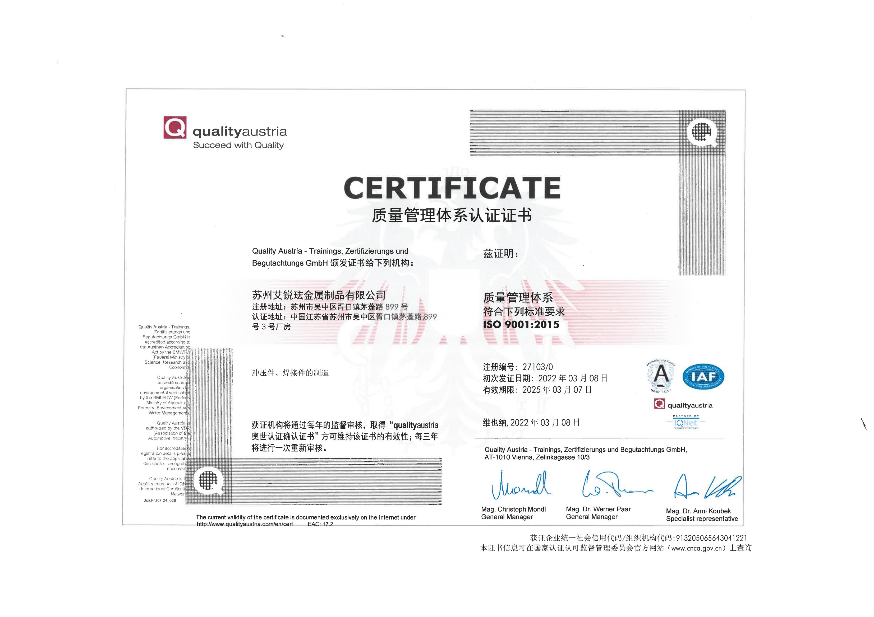 艾銳琺公司以技術為核心,向客戶提供優質的產品、準時的交期、合理的價格、優質的服務從各方面不斷開拓進取,服務于客戶,公司實行ISO9001&IATF16949質量保證體系,致力于打造國內一流的精密鈑金制造公司。